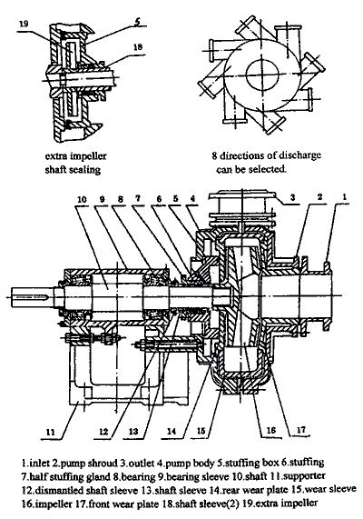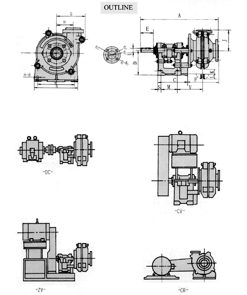 Type AH, HH cantilevered, horizontal, centrifugal slurry pumps are primarily used to pump high-hardness, strong-corrosion and high-concentration liquids that contain suspended solid particles, such as finished ores, refuse ores, ashes, cinders, cements, mud, mineral stones and etc. in the industries of metallurgy, mining, coal, power, building material and etc. The temperature of the pumped solid-liquid mixture should be ≤80℃, and the weight concentration should be ≤60%. |